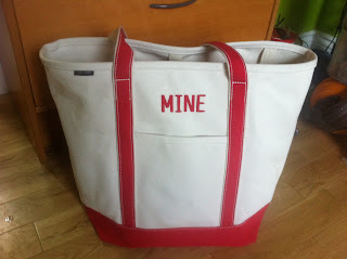 I have used a plastic bin for my “to go” knitting projects for years. But recent frustrations with “dropping” and “tipping” during transport made me rethink that strategy. A couple weeks ago I thought a canvas bag, sturdy, that stood upright, might do the trick. So I ordered a Lands End canvas bag, in large (I measured my requirements), had it custom embroidered, and anxiously awaited its arrival.